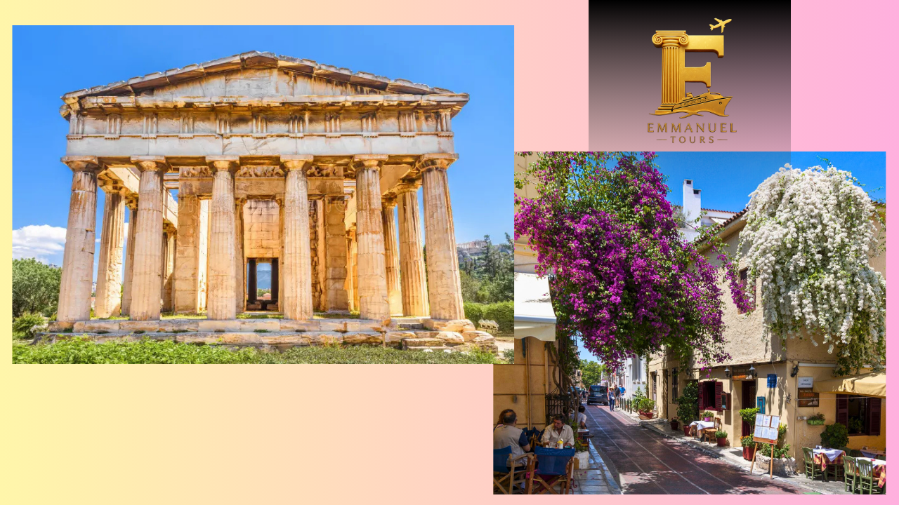 We'll drive you along historic streets to Plaka, a charming old neighbourhood. You'll see the Ancient Greek Agora (that's the old marketplace), the well-preserved Temple of Hephaestus, the massive Temple of Olympian Zeus, and Hadrian's Arch.