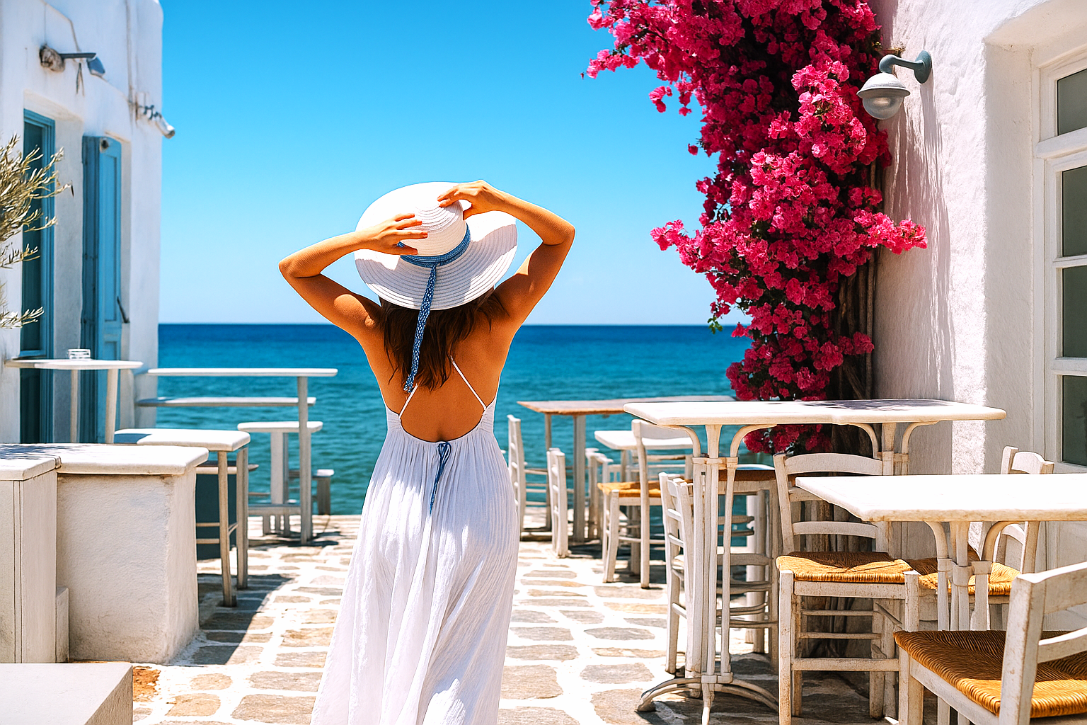 Before heading back to Mykonos town, we'll visit the lovely beaches of Ornos and Agios Giannis. To finish our trip, we'll take you to a special spot for amazing views of Mykonos town and the nearby islands – perfect for photos!